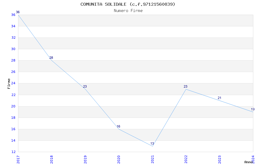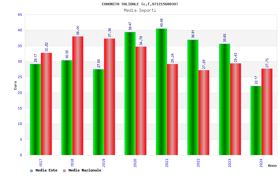 | Anno | Firme | Importi | Media | Naz. | Reg. | Prov. | Comu. |