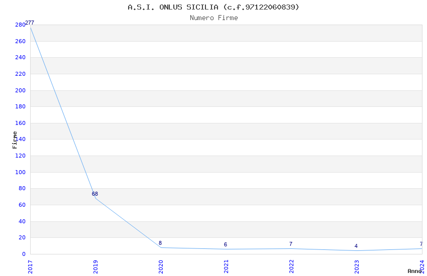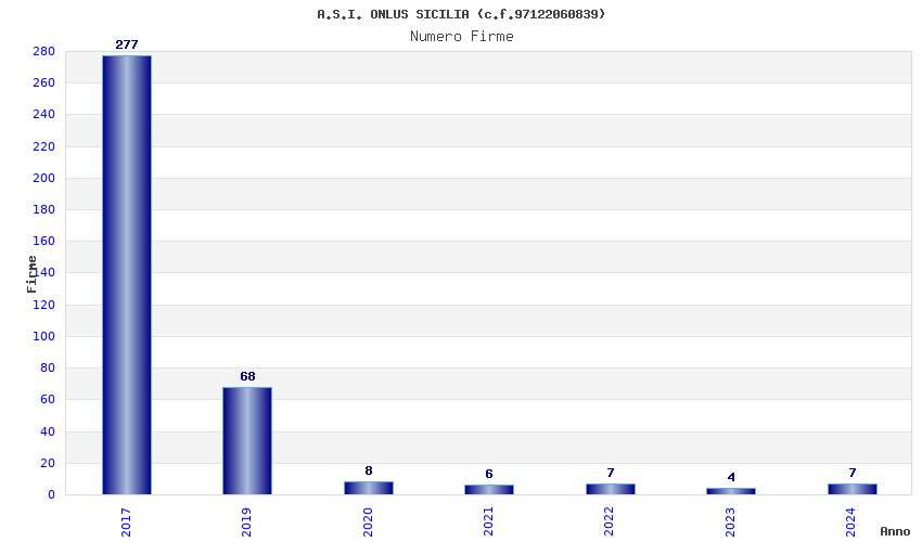 | Anno | Firme | Importi | Media | Naz. | Reg. | Prov. | Comu. |