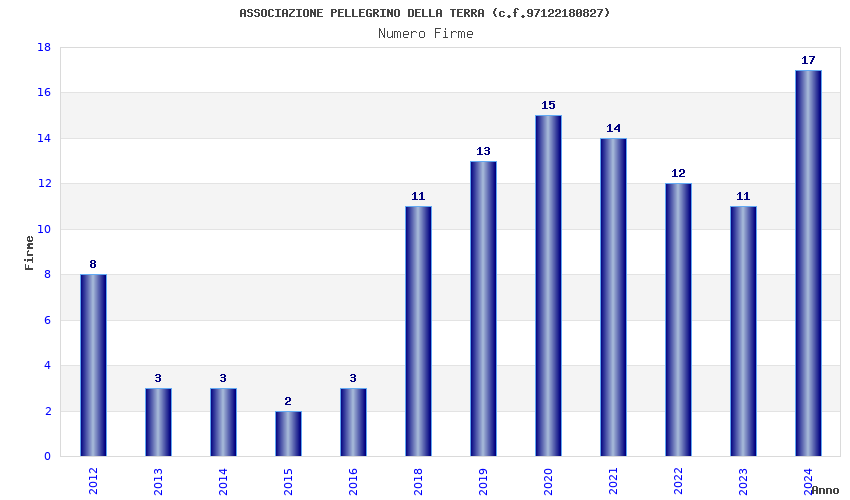 | Anno | Firme | Importi | Media | Naz. | Reg. | Prov. | Comu. |