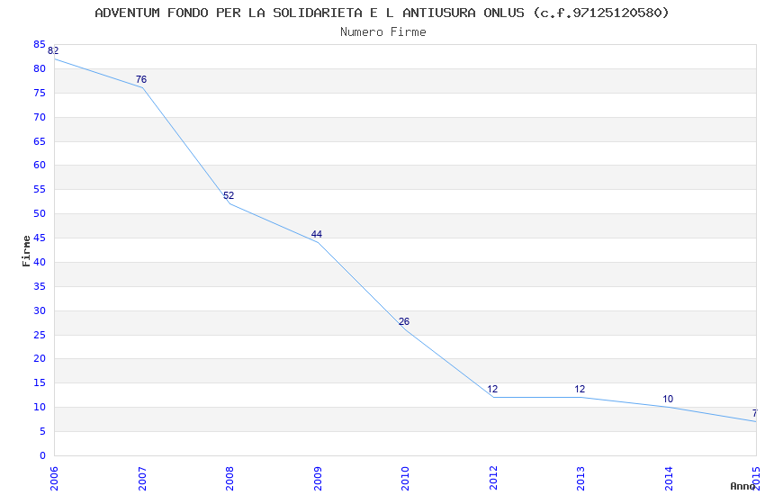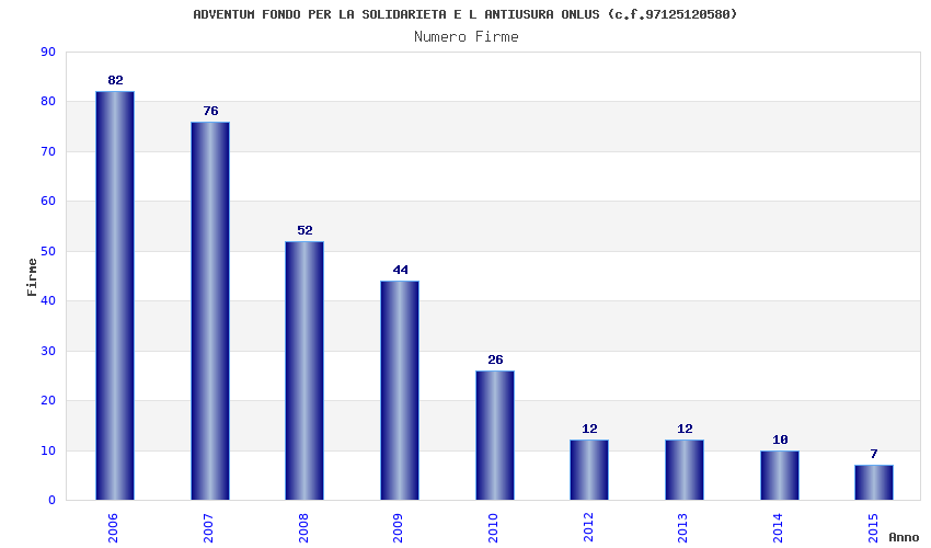 | Anno | Firme | Importi | Media | Naz. | Reg. | Prov. | Comu. |