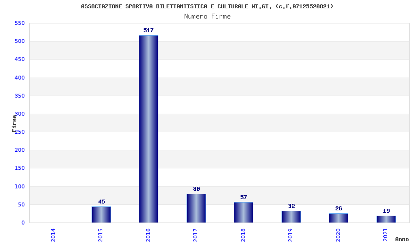 | Anno | Firme | Importi | Media | Naz. | Reg. | Prov. | Comu. |