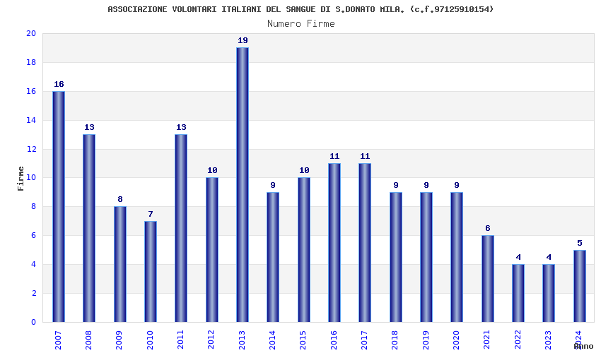 | Anno | Firme | Importi | Media | Naz. | Reg. | Prov. | Comu. |