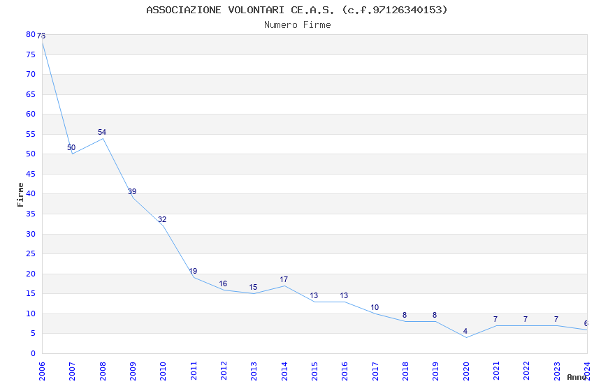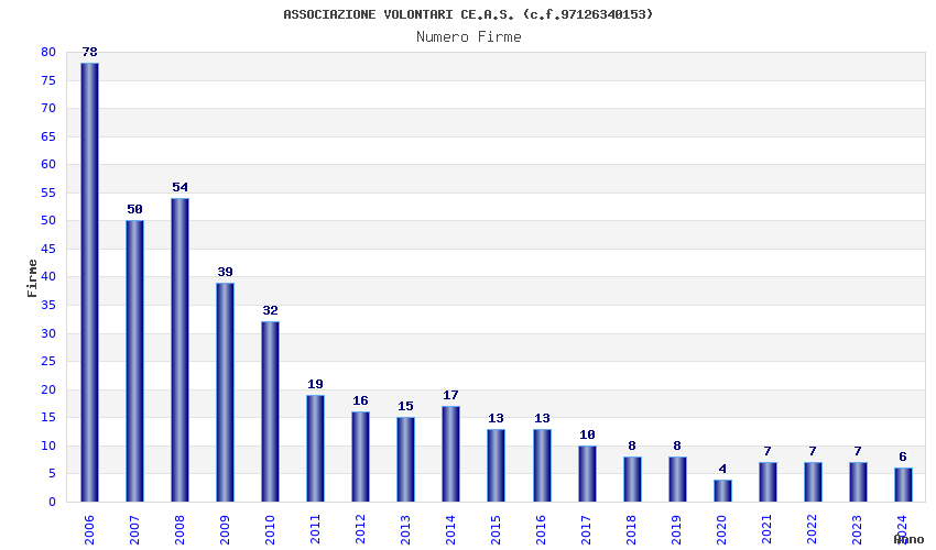 | Anno | Firme | Importi | Media | Naz. | Reg. | Prov. | Comu. |