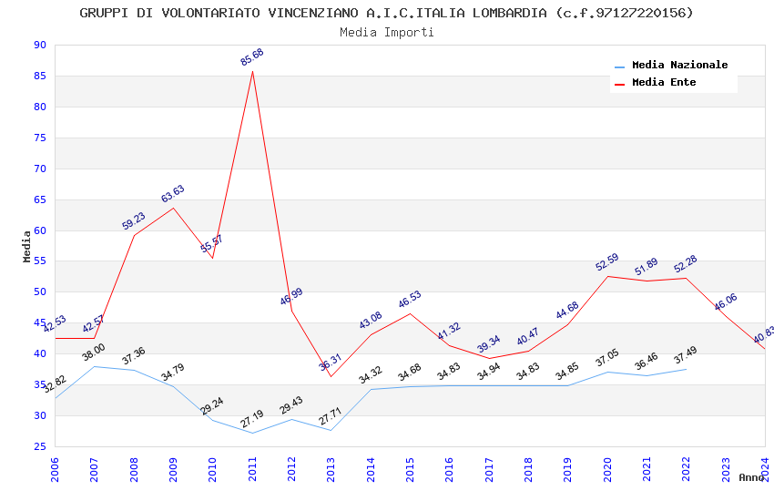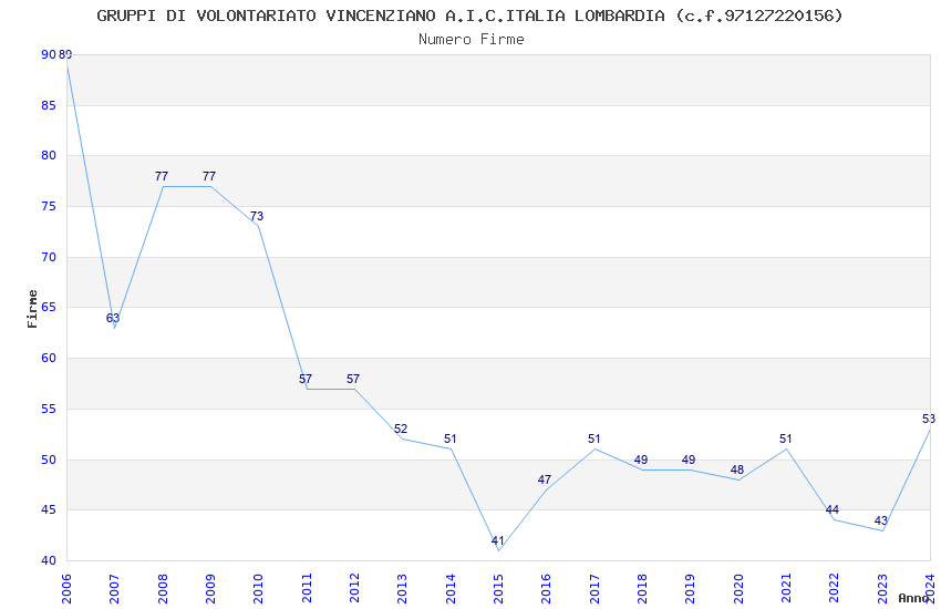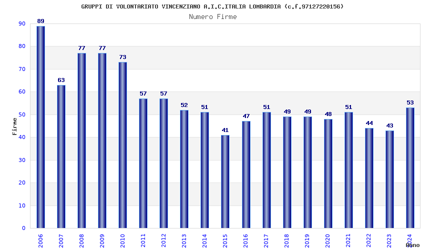 | Anno | Firme | Importi | Media | Naz. | Reg. | Prov. | Comu. |