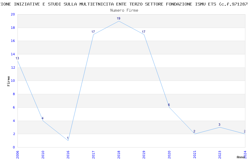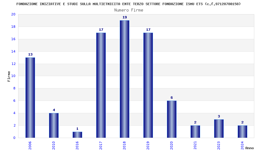 | Anno | Firme | Importi | Media | Naz. | Reg. | Prov. | Comu. |