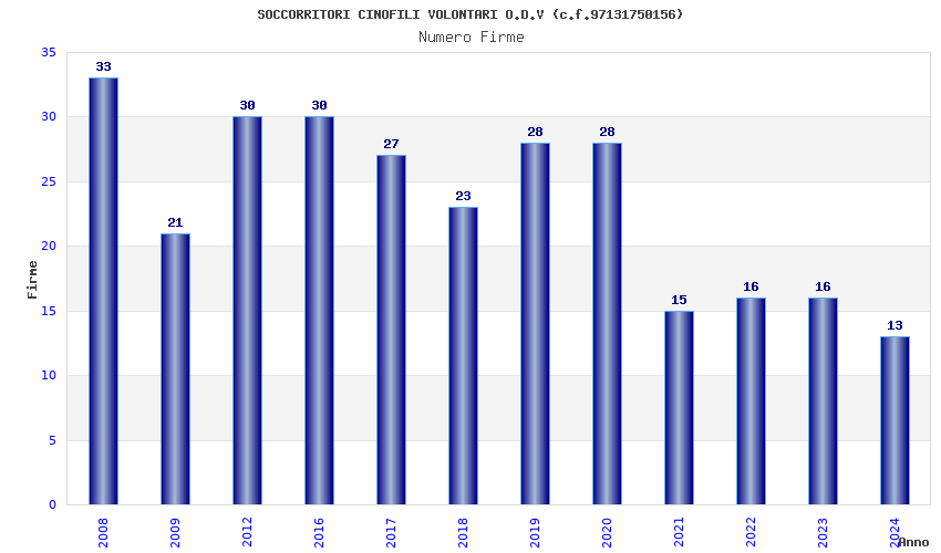 | Anno | Firme | Importi | Media | Naz. | Reg. | Prov. | Comu. |