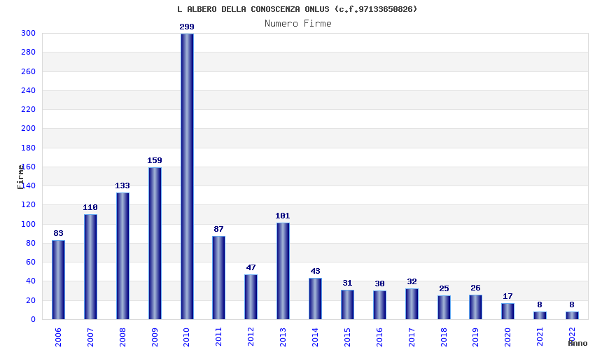 | Anno | Firme | Importi | Media | Naz. | Reg. | Prov. | Comu. |