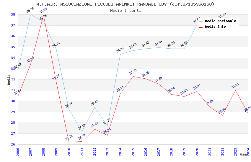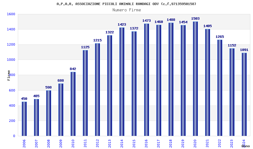 | Anno | Firme | Importi | Media | Naz. | Reg. | Prov. | Comu. |