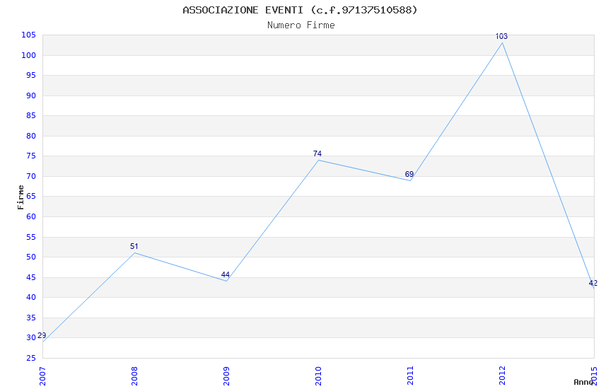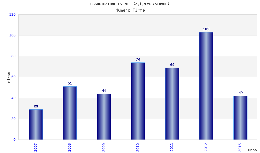 | Anno | Firme | Importi | Media | Naz. | Reg. | Prov. | Comu. |
