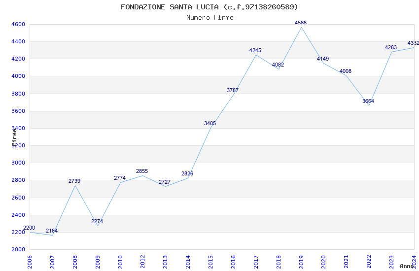 | Anno | Firme | Importi | Media | Naz. | Reg. | Prov. | Comu. |