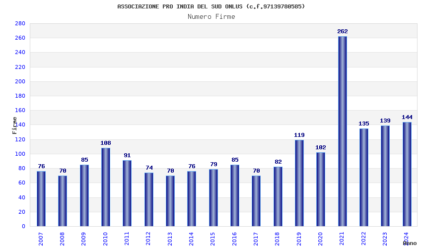 il 5 x mille statistiche con i dati completi