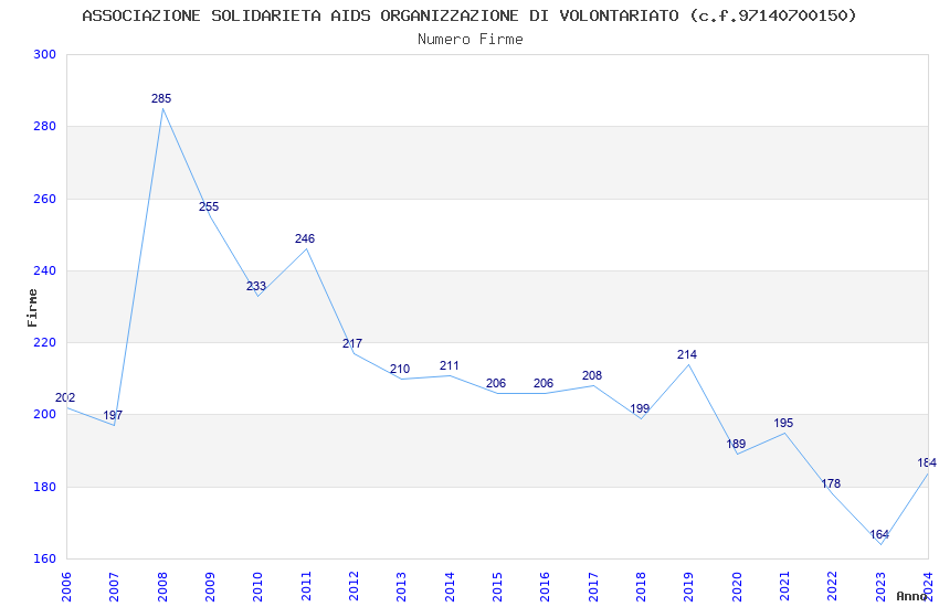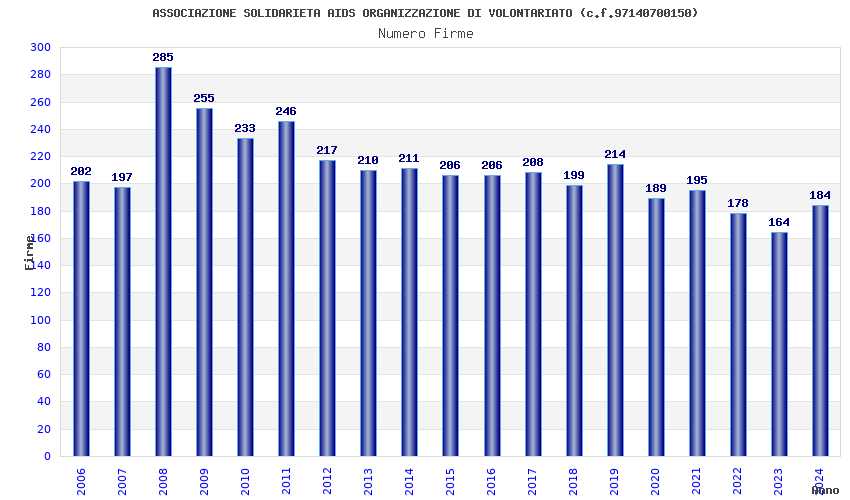 | Anno | Firme | Importi | Media | Naz. | Reg. | Prov. | Comu. |