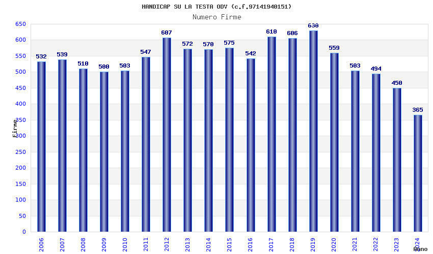 | Anno | Firme | Importi | Media | Naz. | Reg. | Prov. | Comu. |