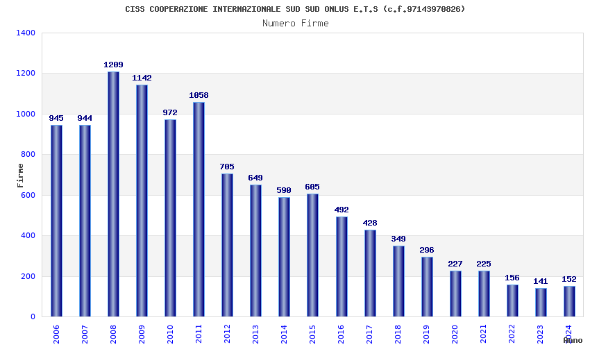 | Anno | Firme | Importi | Media | Naz. | Reg. | Prov. | Comu. |