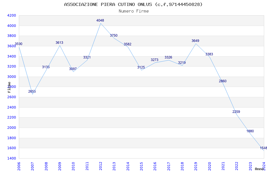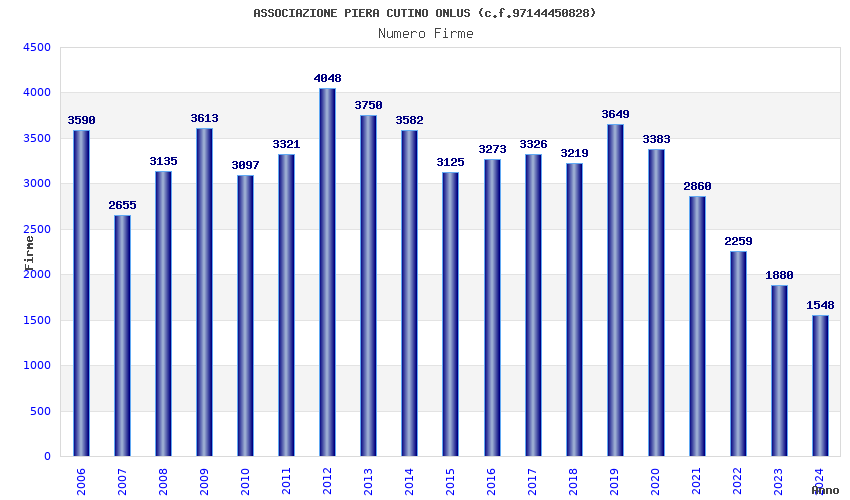 | Anno | Firme | Importi | Media | Naz. | Reg. | Prov. | Comu. |