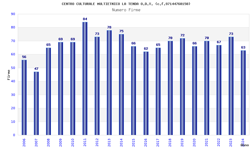 | Anno | Firme | Importi | Media | Naz. | Reg. | Prov. | Comu. |