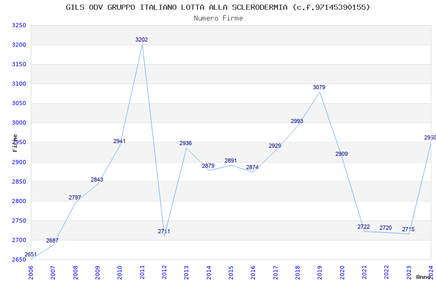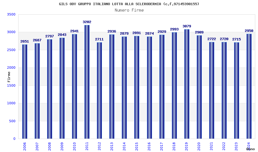 | Anno | Firme | Importi | Media | Naz. | Reg. | Prov. | Comu. |