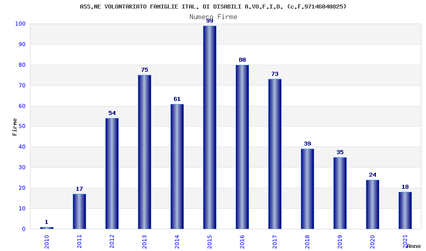 | Anno | Firme | Importi | Media | Naz. | Reg. | Prov. | Comu. |