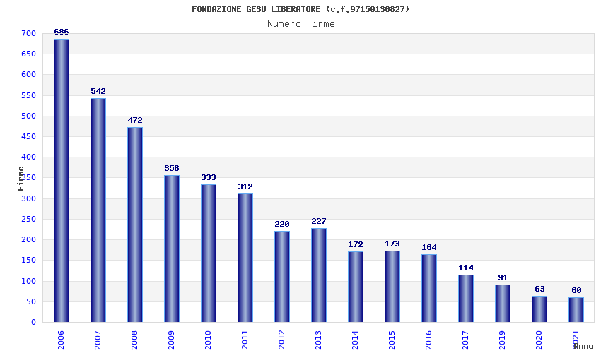 | Anno | Firme | Importi | Media | Naz. | Reg. | Prov. | Comu. |