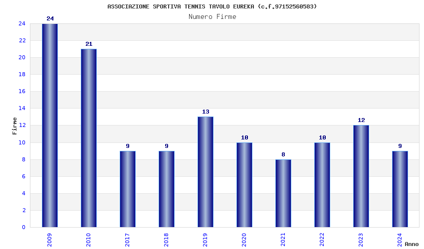 | Anno | Firme | Importi | Media | Naz. | Reg. | Prov. | Comu. |