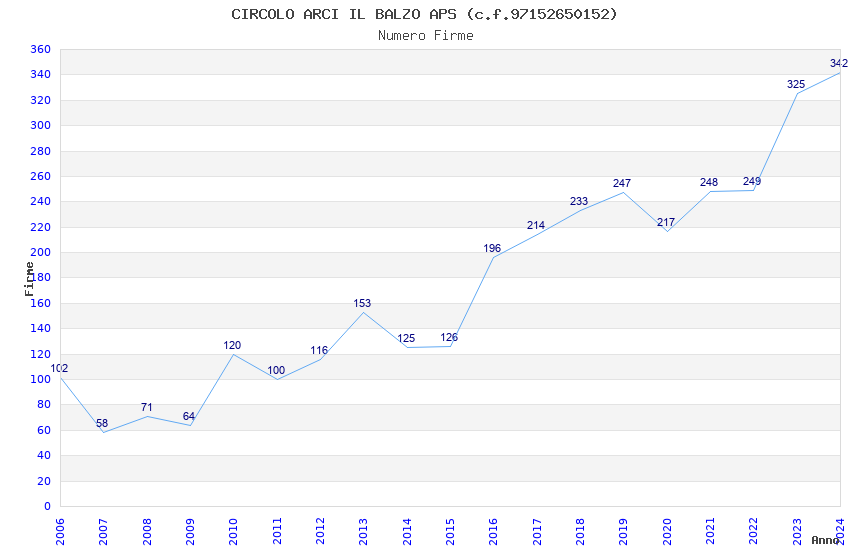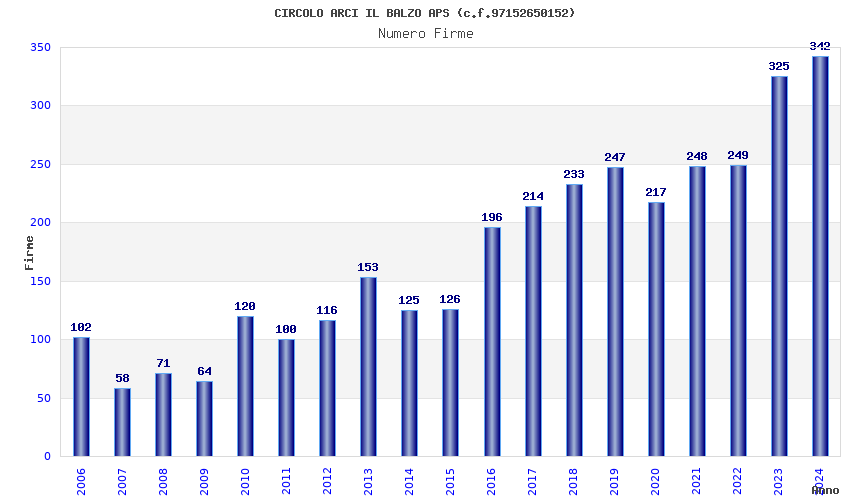 | Anno | Firme | Importi | Media | Naz. | Reg. | Prov. | Comu. |