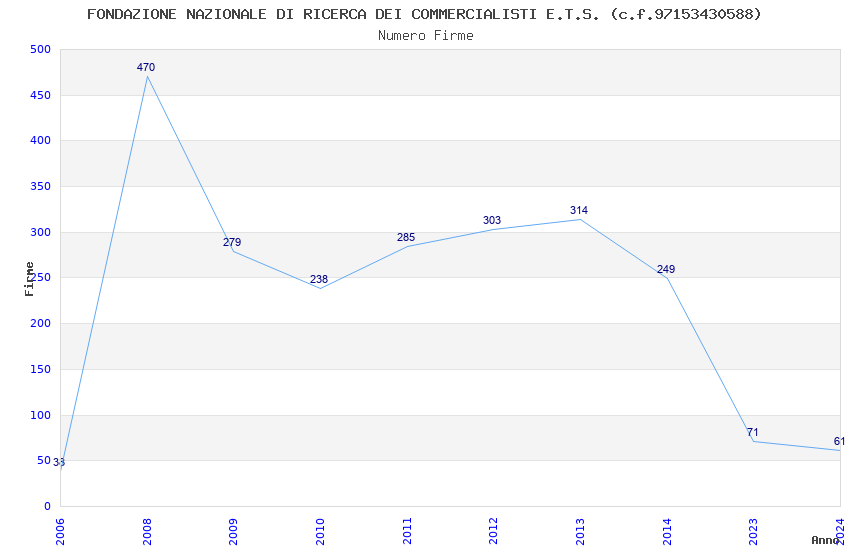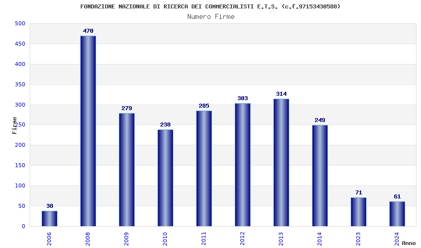| Anno | Firme | Importi | Media | Naz. | Reg. | Prov. | Comu. |