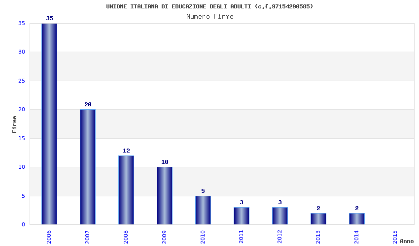 | Anno | Firme | Importi | Media | Naz. | Reg. | Prov. | Comu. |