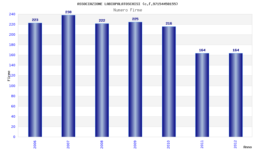 | Anno | Firme | Importi | Media | Naz. | Reg. | Prov. | Comu. |