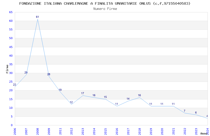 | Anno | Firme | Importi | Media | Naz. | Reg. | Prov. | Comu. |