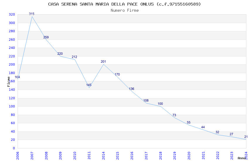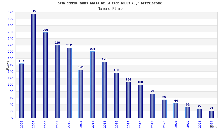 | Anno | Firme | Importi | Media | Naz. | Reg. | Prov. | Comu. |