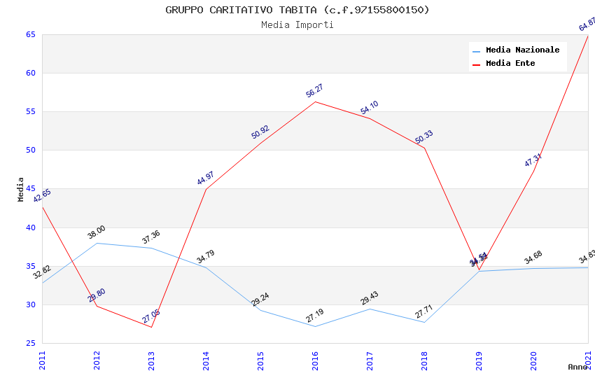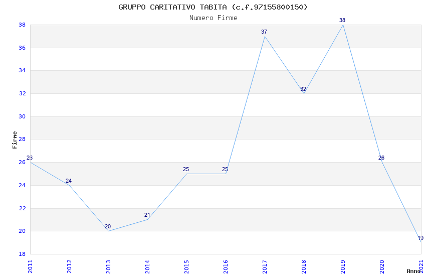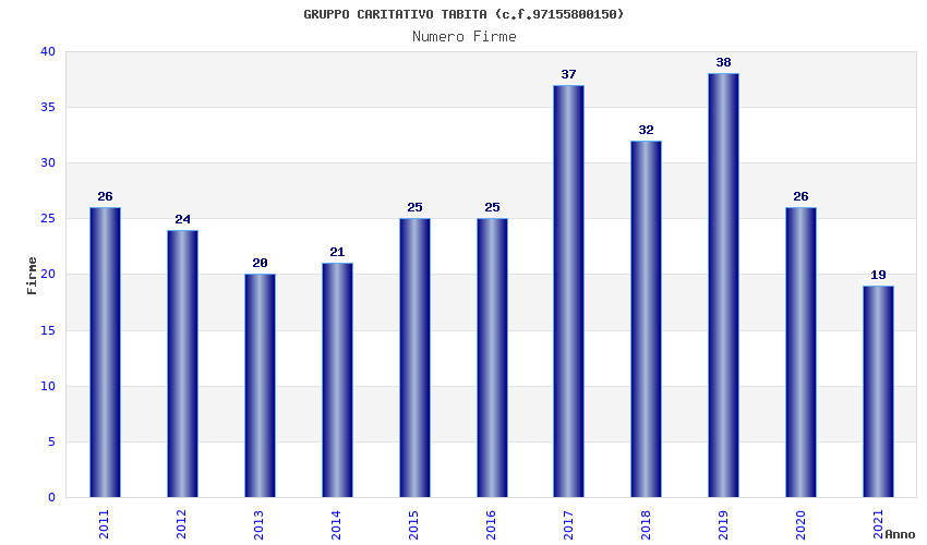 | Anno | Firme | Importi | Media | Naz. | Reg. | Prov. | Comu. |