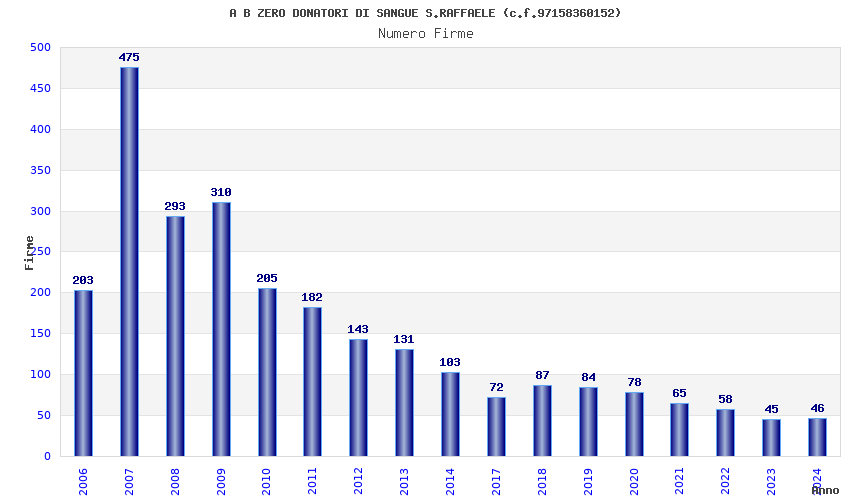 | Anno | Firme | Importi | Media | Naz. | Reg. | Prov. | Comu. |