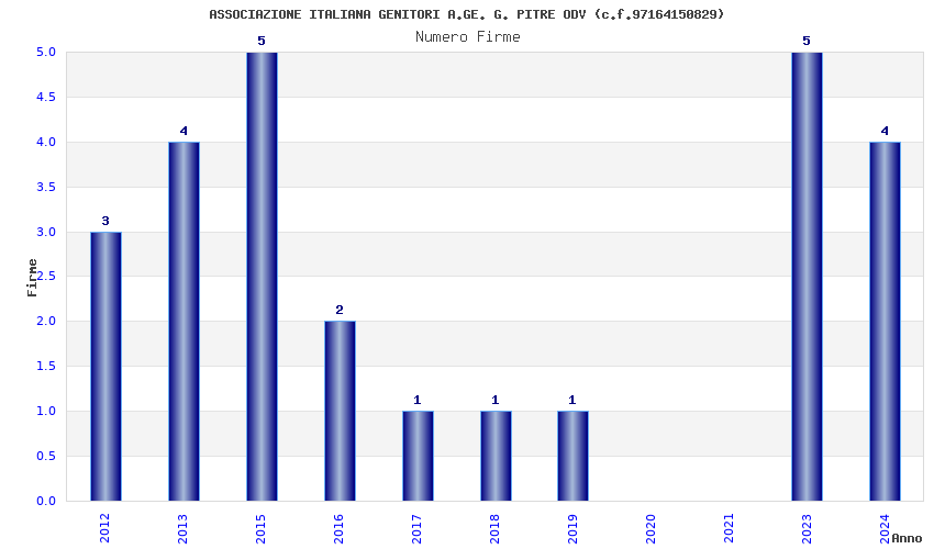 | Anno | Firme | Importi | Media | Naz. | Reg. | Prov. | Comu. |