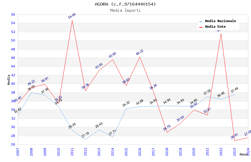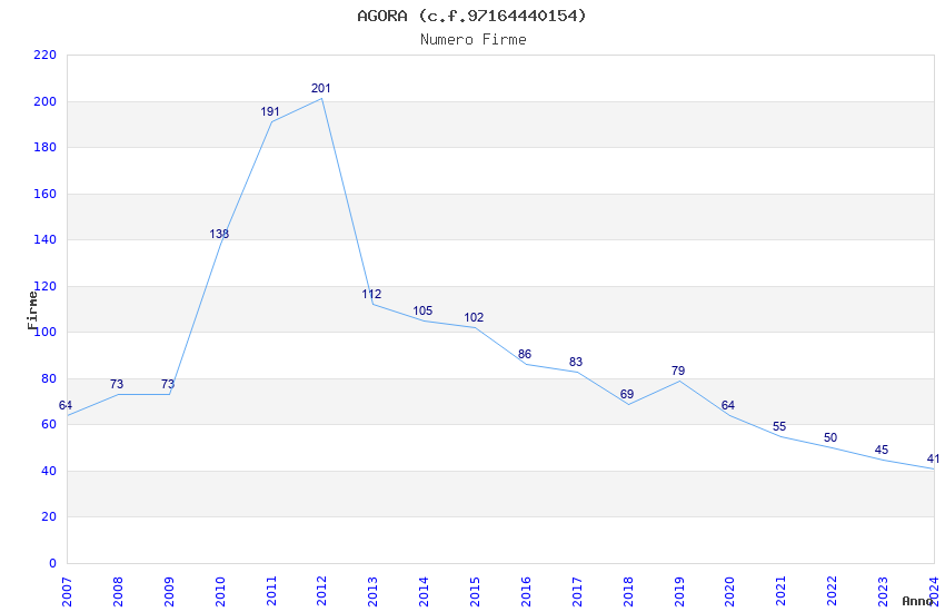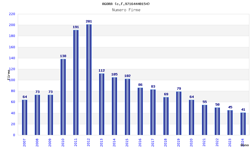| Anno | Firme | Importi | Media | Naz. | Reg. | Prov. | Comu. |
