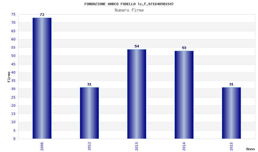 | Anno | Firme | Importi | Media | Naz. | Reg. | Prov. | Comu. |