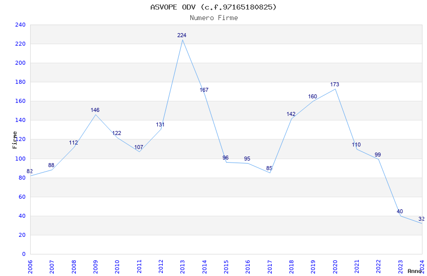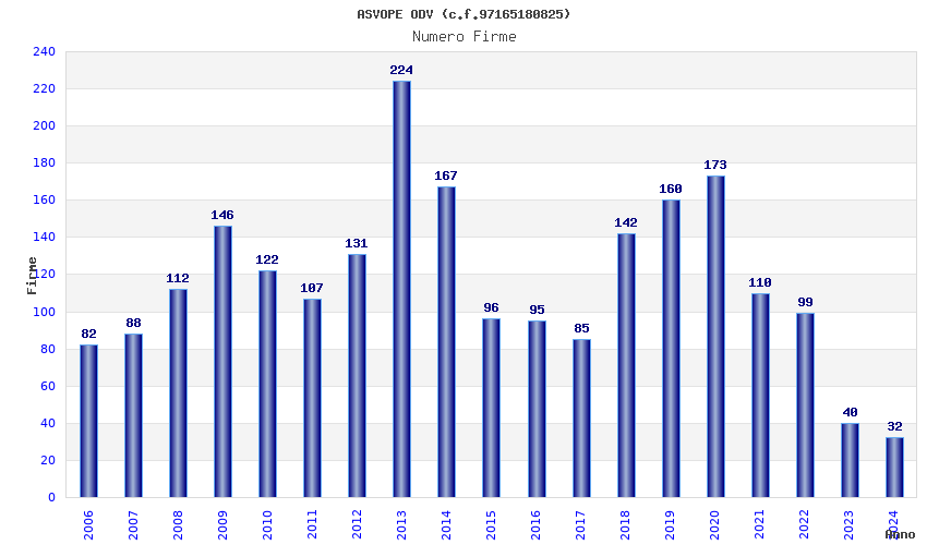 | Anno | Firme | Importi | Media | Naz. | Reg. | Prov. | Comu. |