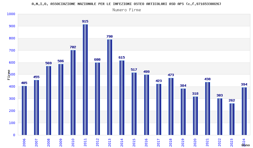| Anno | Firme | Importi | Media | Naz. | Reg. | Prov. | Comu. |
