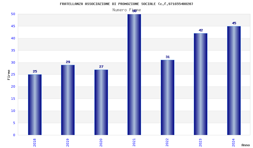 | Anno | Firme | Importi | Media | Naz. | Reg. | Prov. | Comu. |