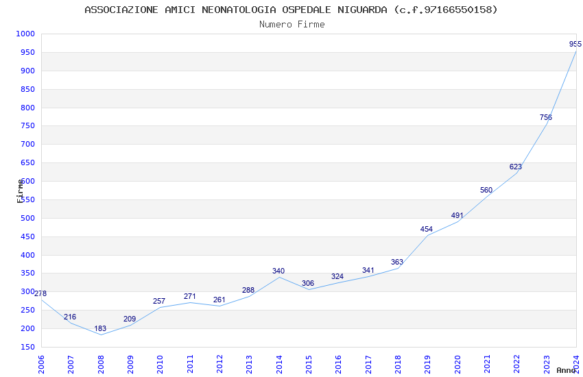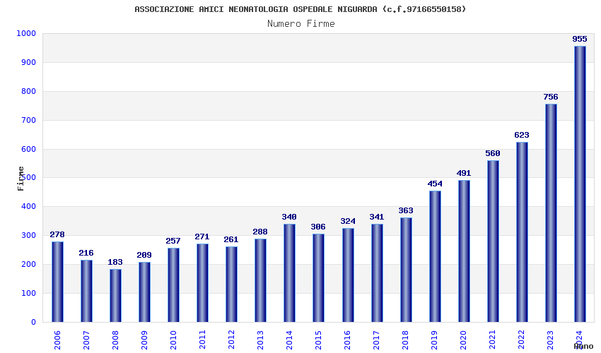 | Anno | Firme | Importi | Media | Naz. | Reg. | Prov. | Comu. |