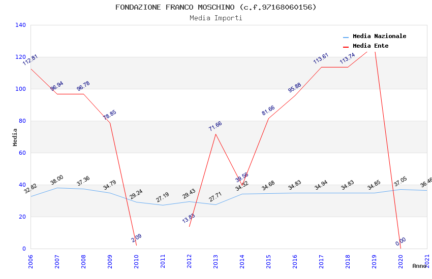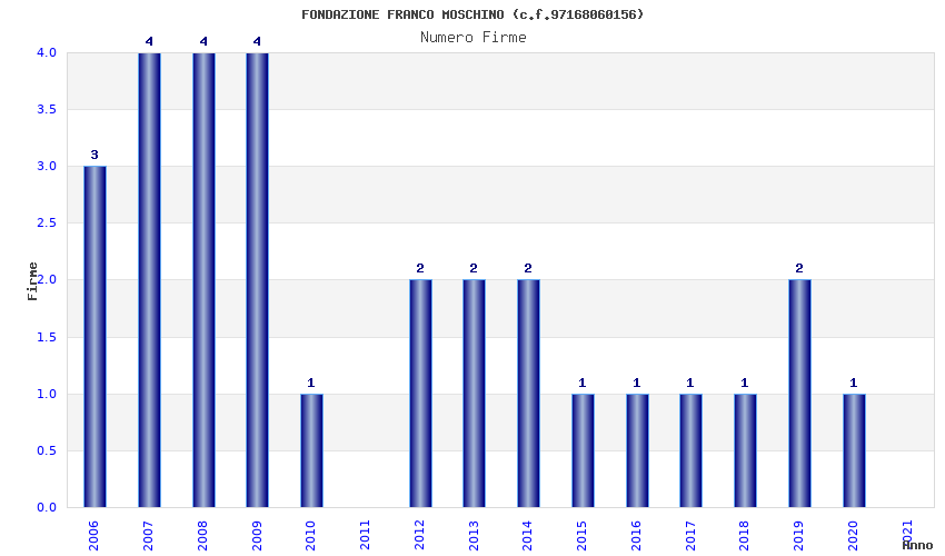 | Anno | Firme | Importi | Media | Naz. | Reg. | Prov. | Comu. |