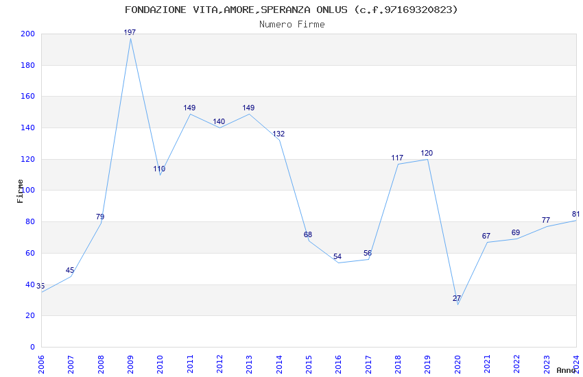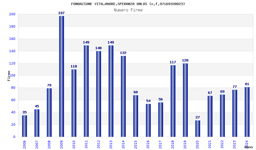 | Anno | Firme | Importi | Media | Naz. | Reg. | Prov. | Comu. |