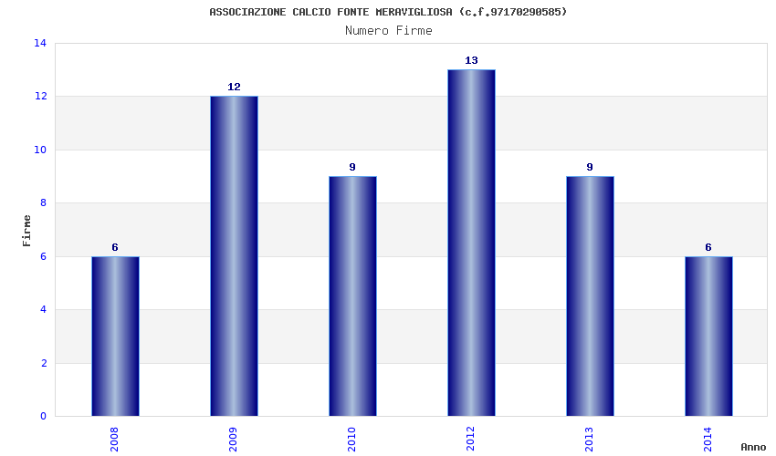 | Anno | Firme | Importi | Media | Naz. | Reg. | Prov. | Comu. |