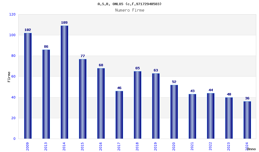 | Anno | Firme | Importi | Media | Naz. | Reg. | Prov. | Comu. |