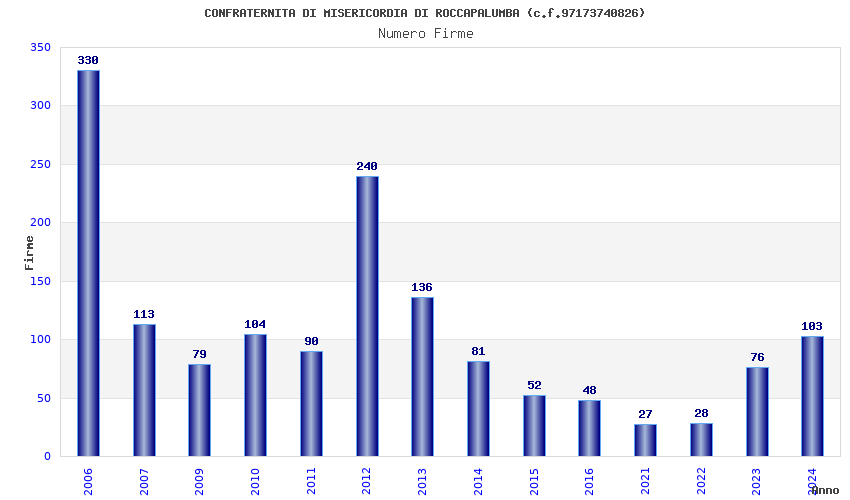 | Anno | Firme | Importi | Media | Naz. | Reg. | Prov. | Comu. |