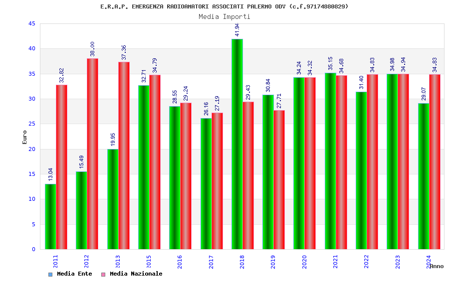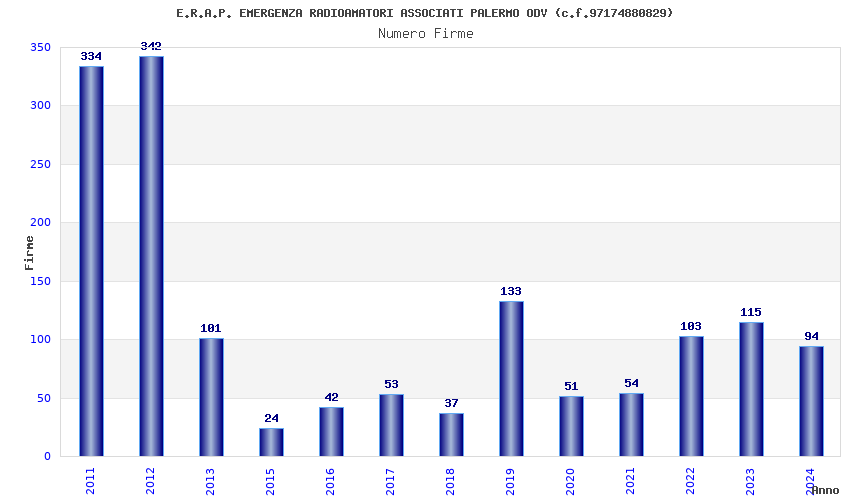 | Anno | Firme | Importi | Media | Naz. | Reg. | Prov. | Comu. |
