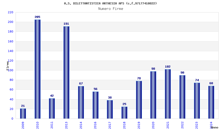 Anno Firme Importi Media Naz. Reg. Prov. Comu.