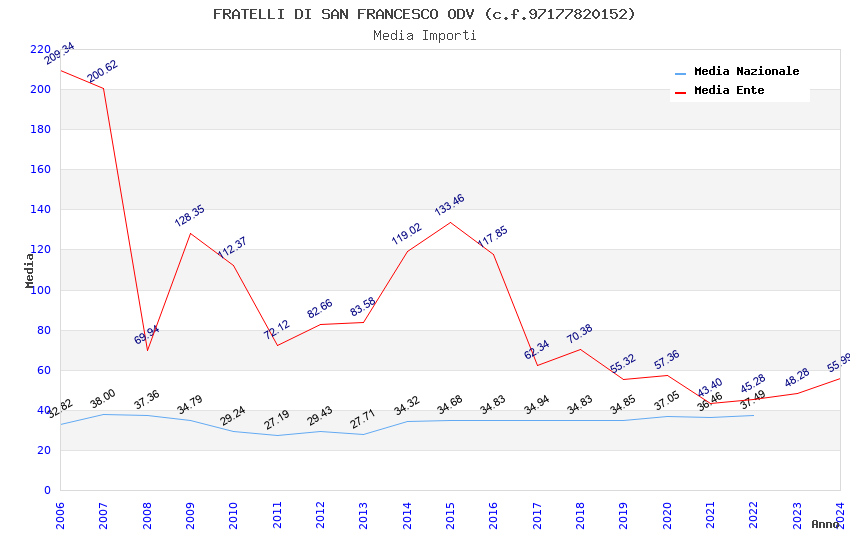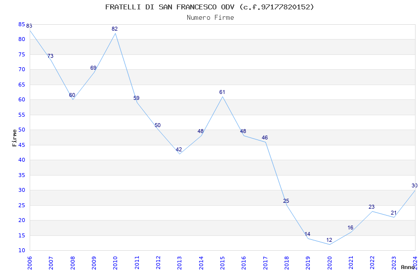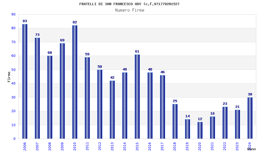 | Anno | Firme | Importi | Media | Naz. | Reg. | Prov. | Comu. |