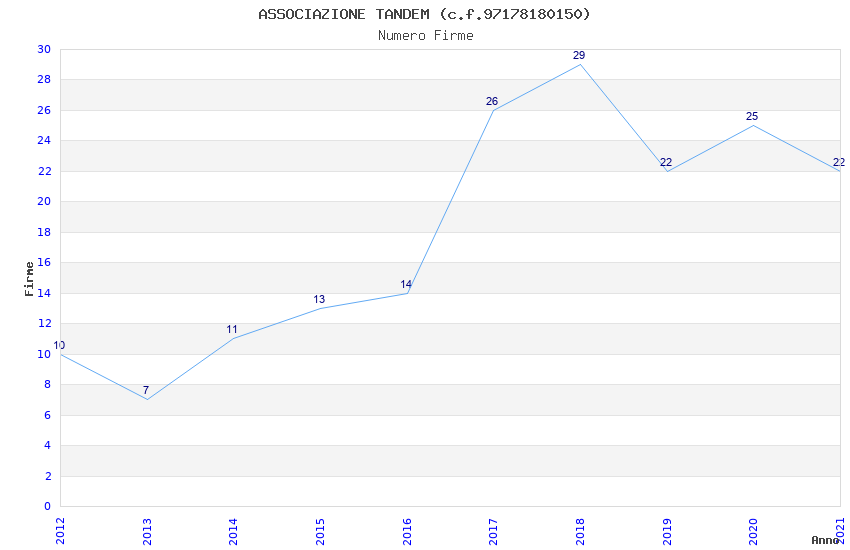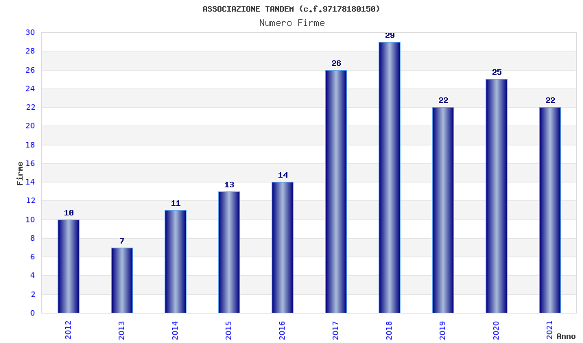 | Anno | Firme | Importi | Media | Naz. | Reg. | Prov. | Comu. |