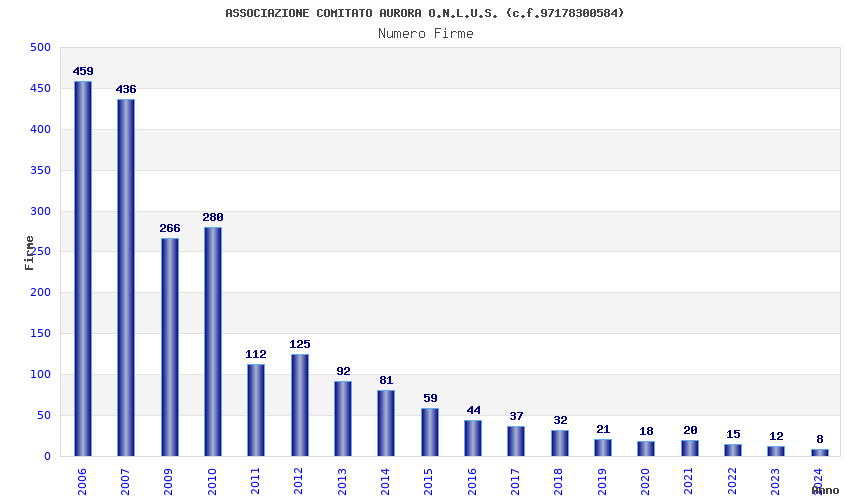 | Anno | Firme | Importi | Media | Naz. | Reg. | Prov. | Comu. |