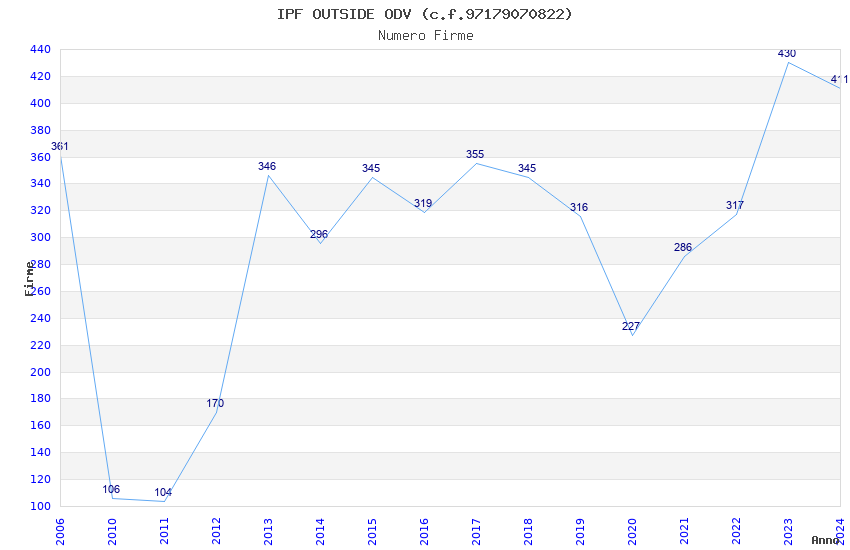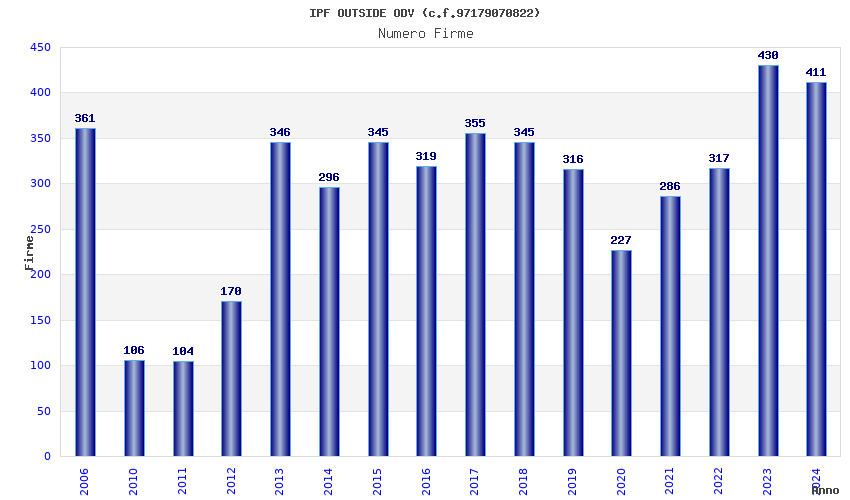 | Anno | Firme | Importi | Media | Naz. | Reg. | Prov. | Comu. |